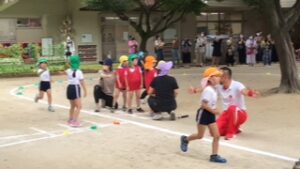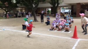 心配されたお天気もどうにかもちこたえ、年長さんによる「クラス対抗リレー」が開催されました。「一人ひとりが力をだしきる!」「友達と心を合わせ、最後までバトンを繋ぐ!」を目標に、全員頑張ることができました。保護者の方々が応援に来てくださり、温かい声援をたくさんいただきました!ありがとうございました!