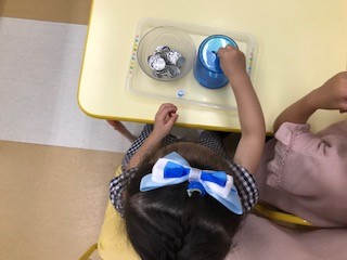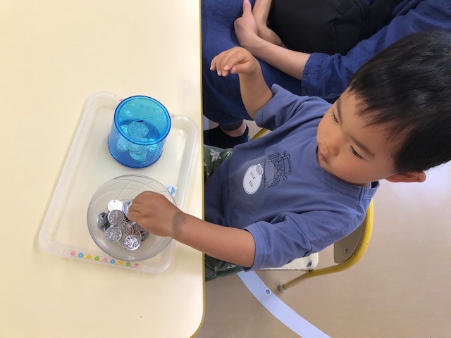 コイン落とし:みんなが大好きなおしごとです。キラキラひかるコインが魅力的です。