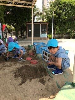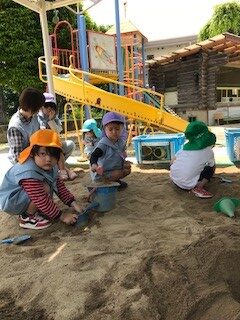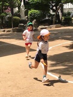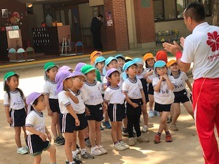 5月11日(木) 横割活動が始まりました! 活動ブログ 2023年5月11日 爽やかな5月の空の下、横割活動の「体操」を行いました! マハロスポーツクラブの宮本先生の元気なご指導をいただきながら、子ども達は元気に運動ができました! 年中児・年長児のグループに分かれ、準備体操、かけっこ、リレーに取り組みました。 今年度初めての活動で、最初はとまどいながらも、みんなでの元気に楽しく活動できました。 年少児は、第2園庭で砂遊びや鬼ごっこをして遊びました。汗をたくさんかきましたね!