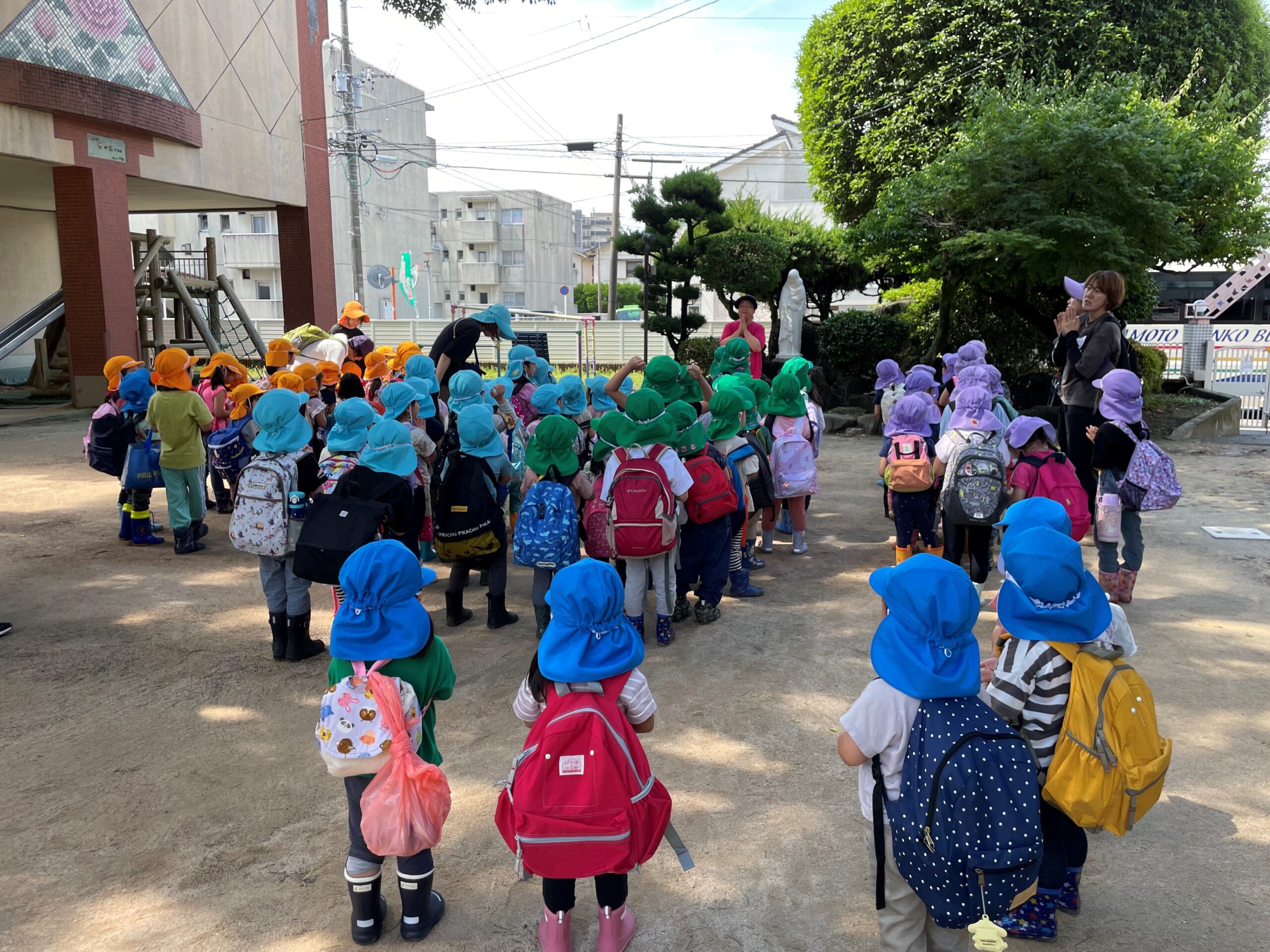 梅雨入りしたにも関わらず、この日はいい天気となり、園外保育日和となりました✨