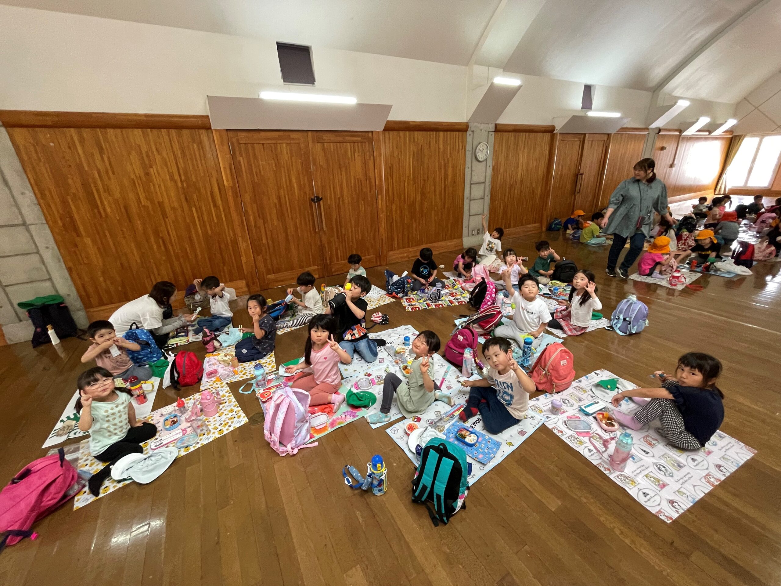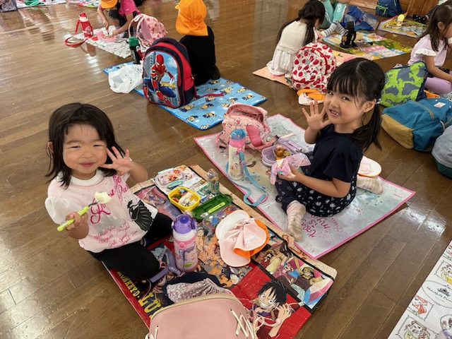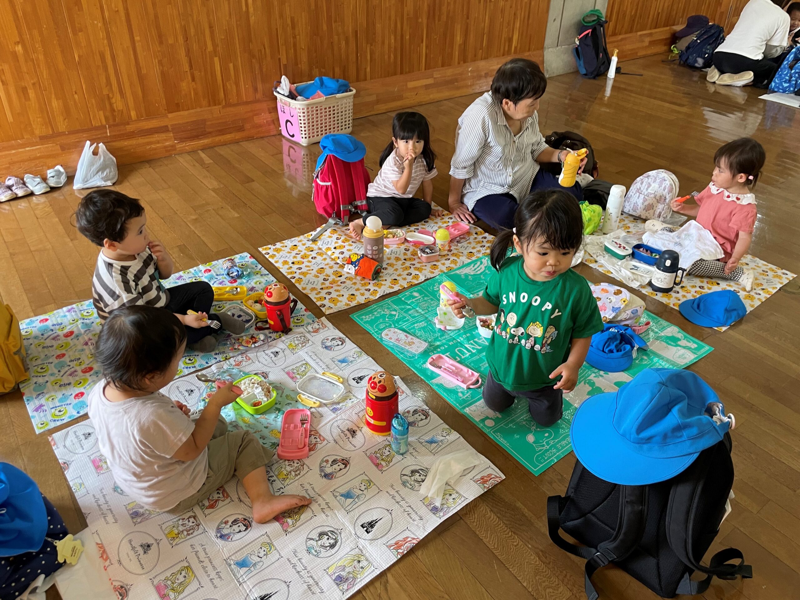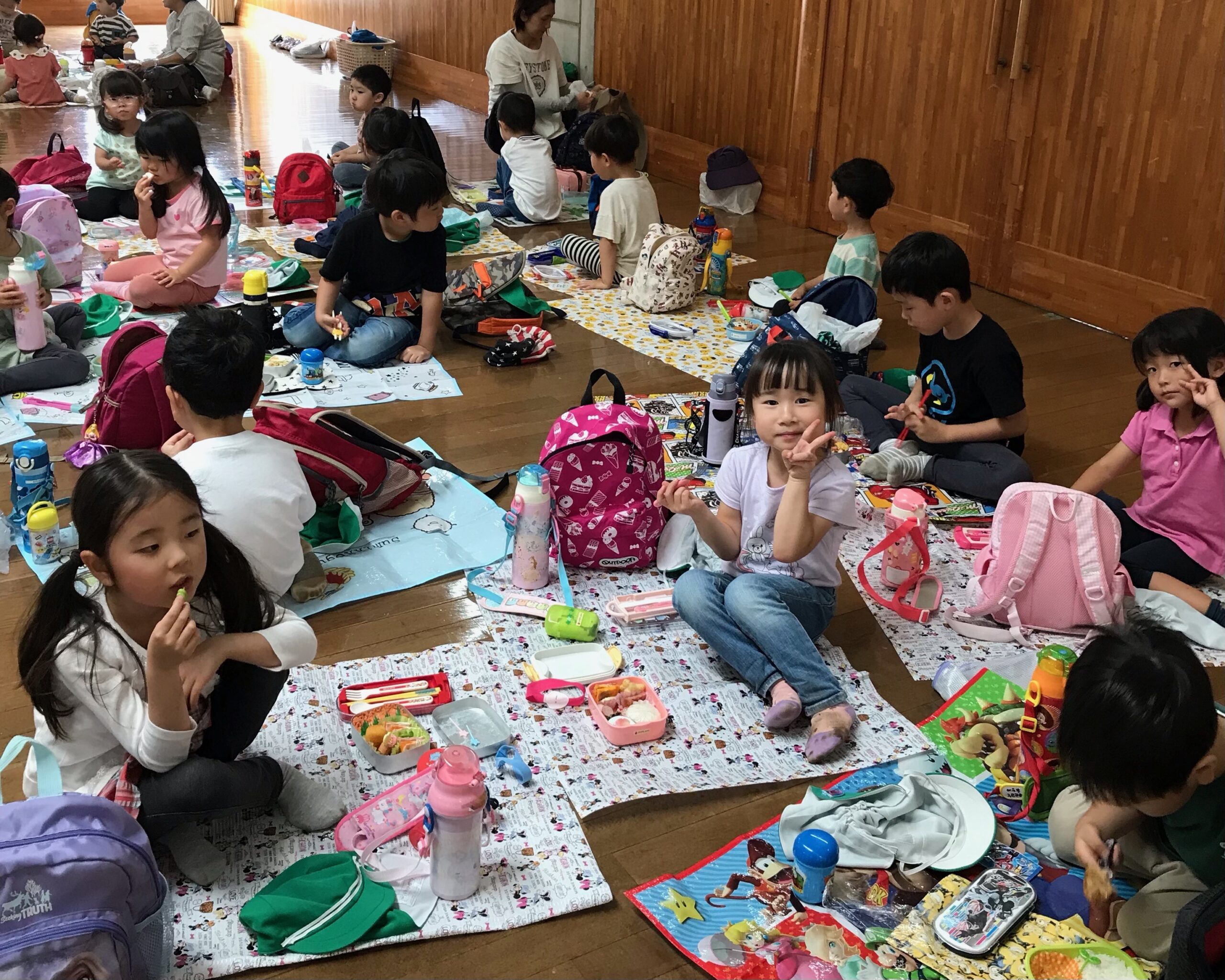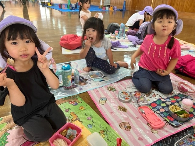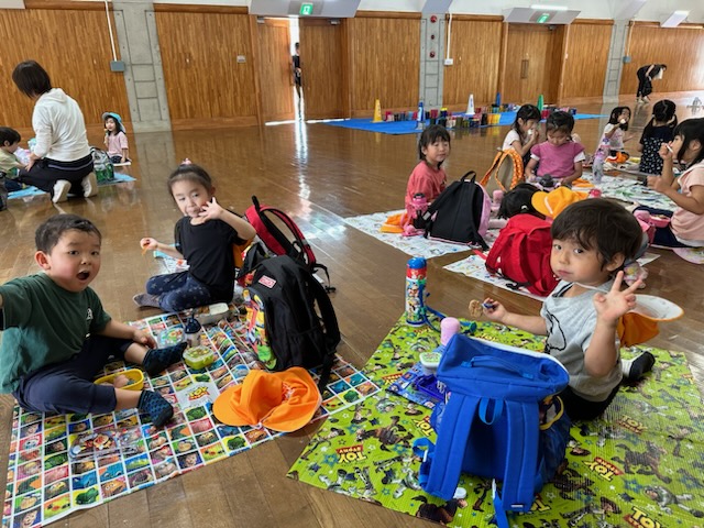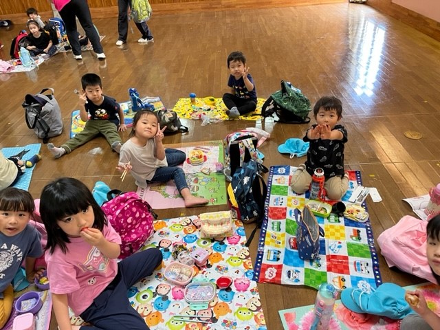 お弁当は、みんなでシートを敷いて食べました🍙