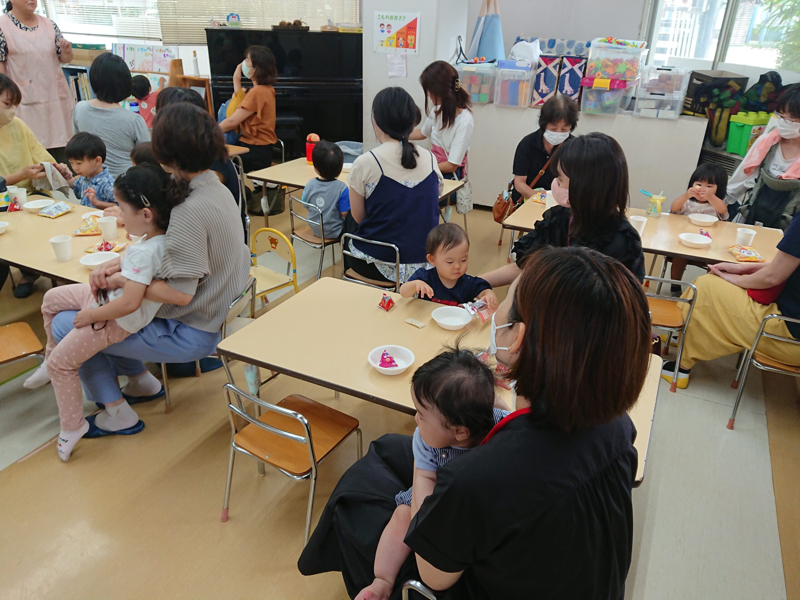 おやつはみんなでいただきます。赤ちゃん用のおやつも用意していますので、みんなで一緒におやつを食べることができますよ😊