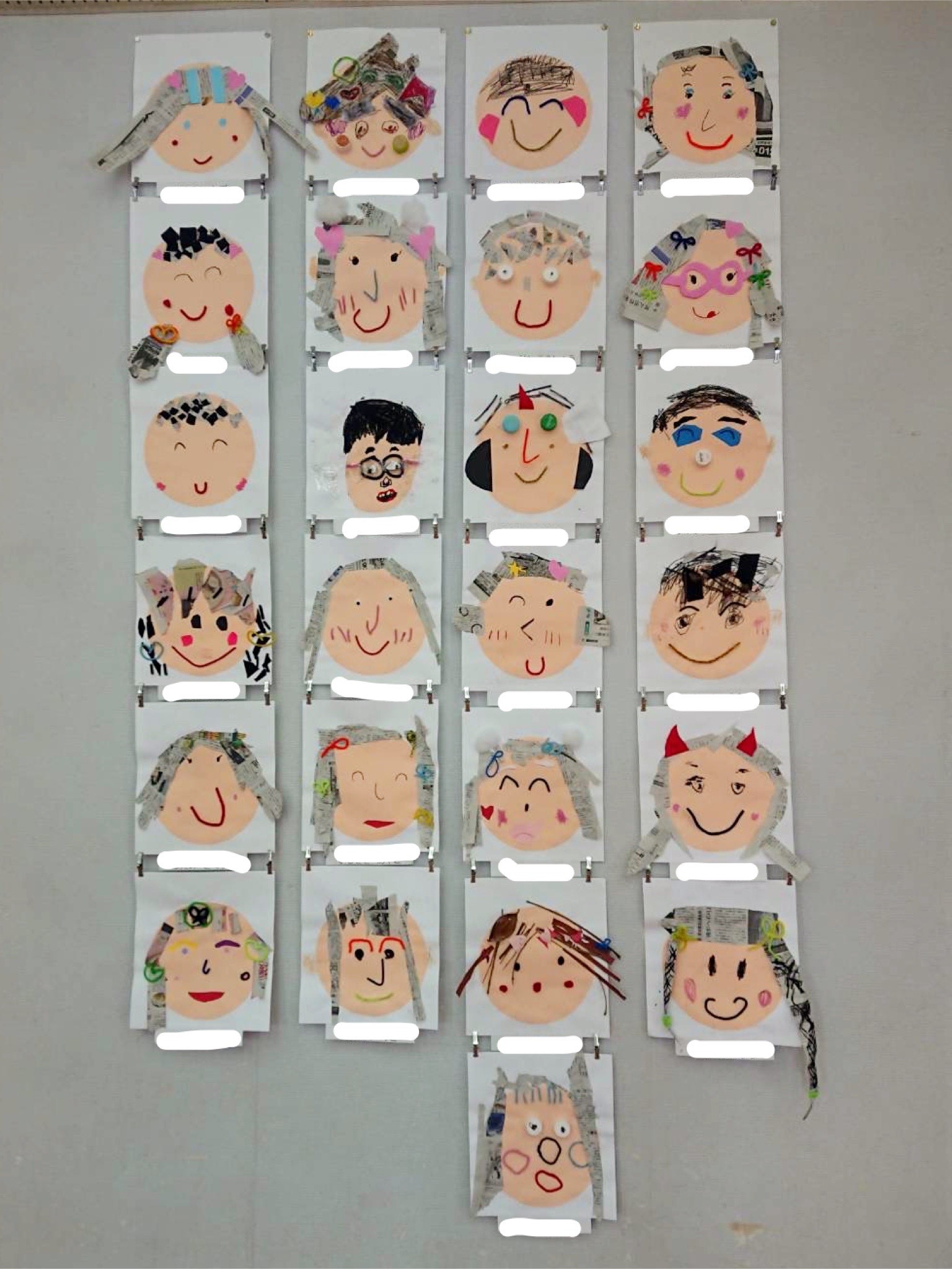 年長児は、新聞紙・フェルト・モール・画用紙などを使って自分の顔を作りました。はさみを使ったり、外で集めた木の実や枝を使っているお友だちもいました🌟「それどうやったの?」「教えて!」とお友達と会話を楽しみながら取り組むことが出来ました!