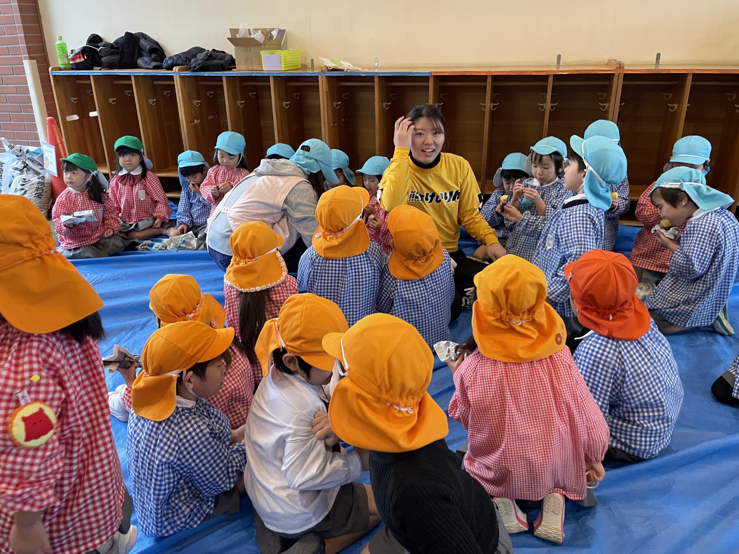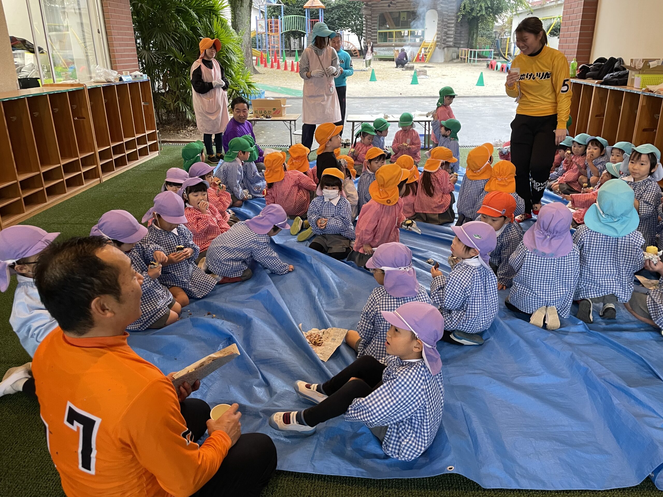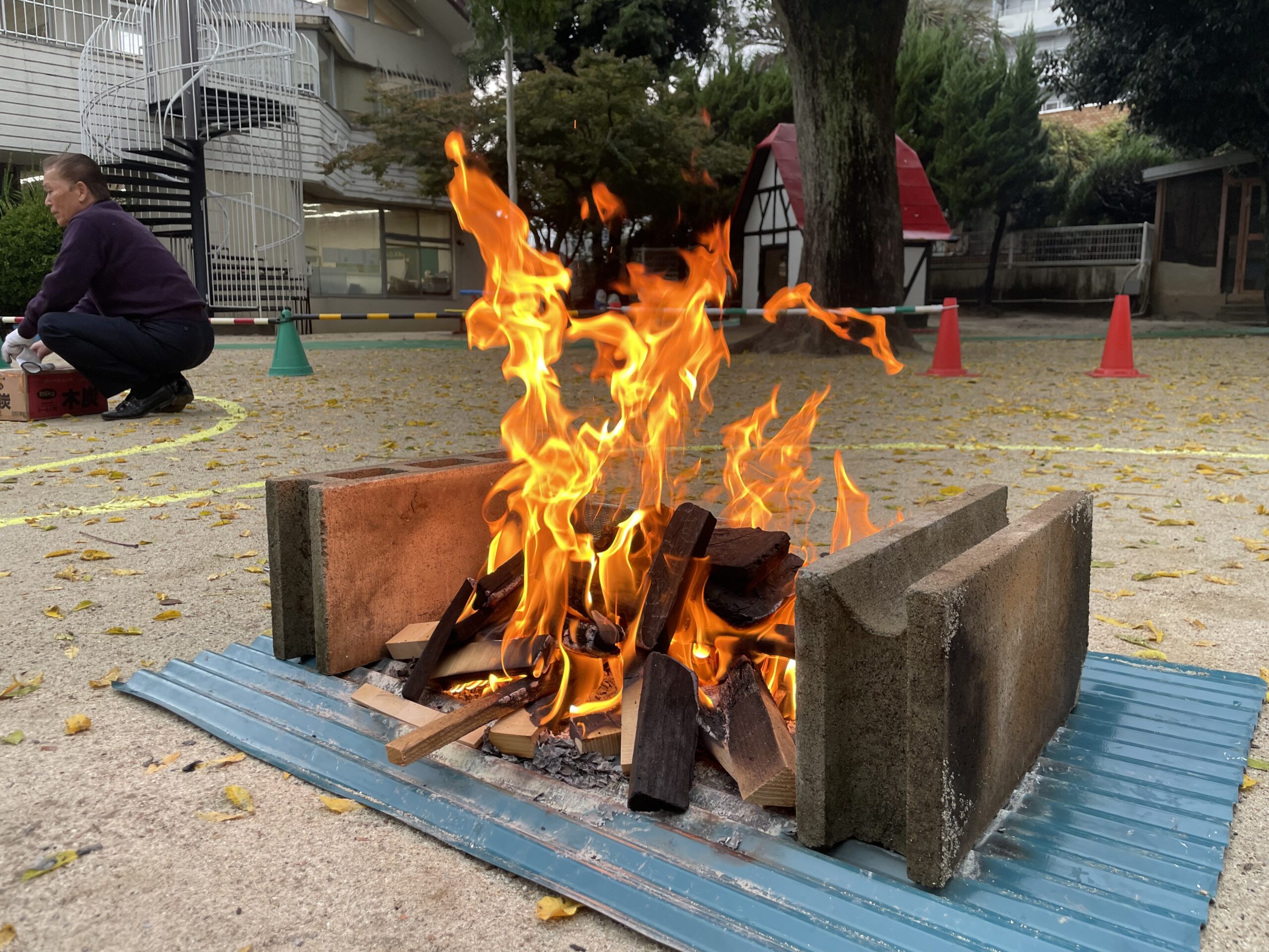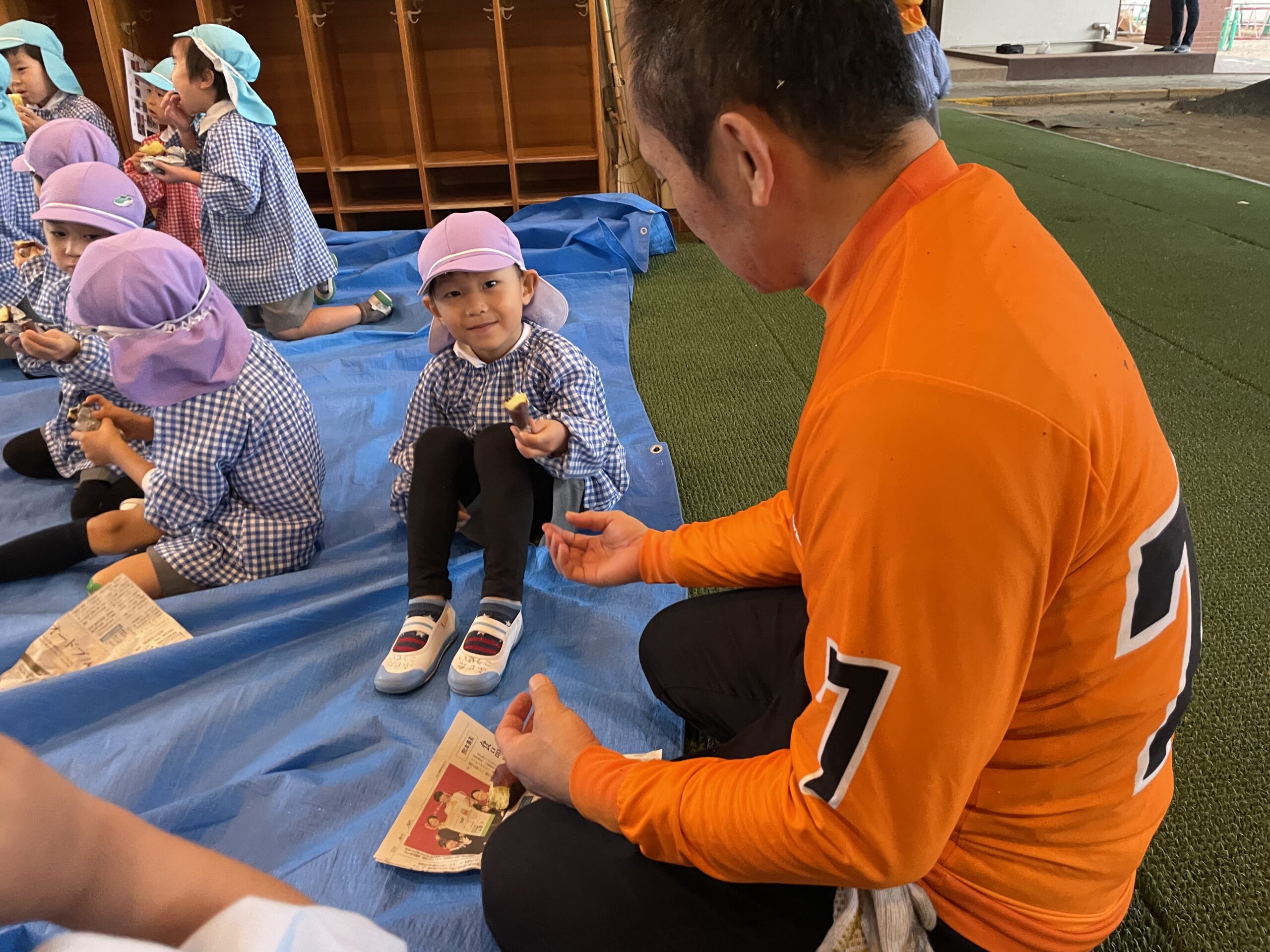 雨が降る中、子どもたちのために芋を焼いてくださいました…!ありがとうございました!