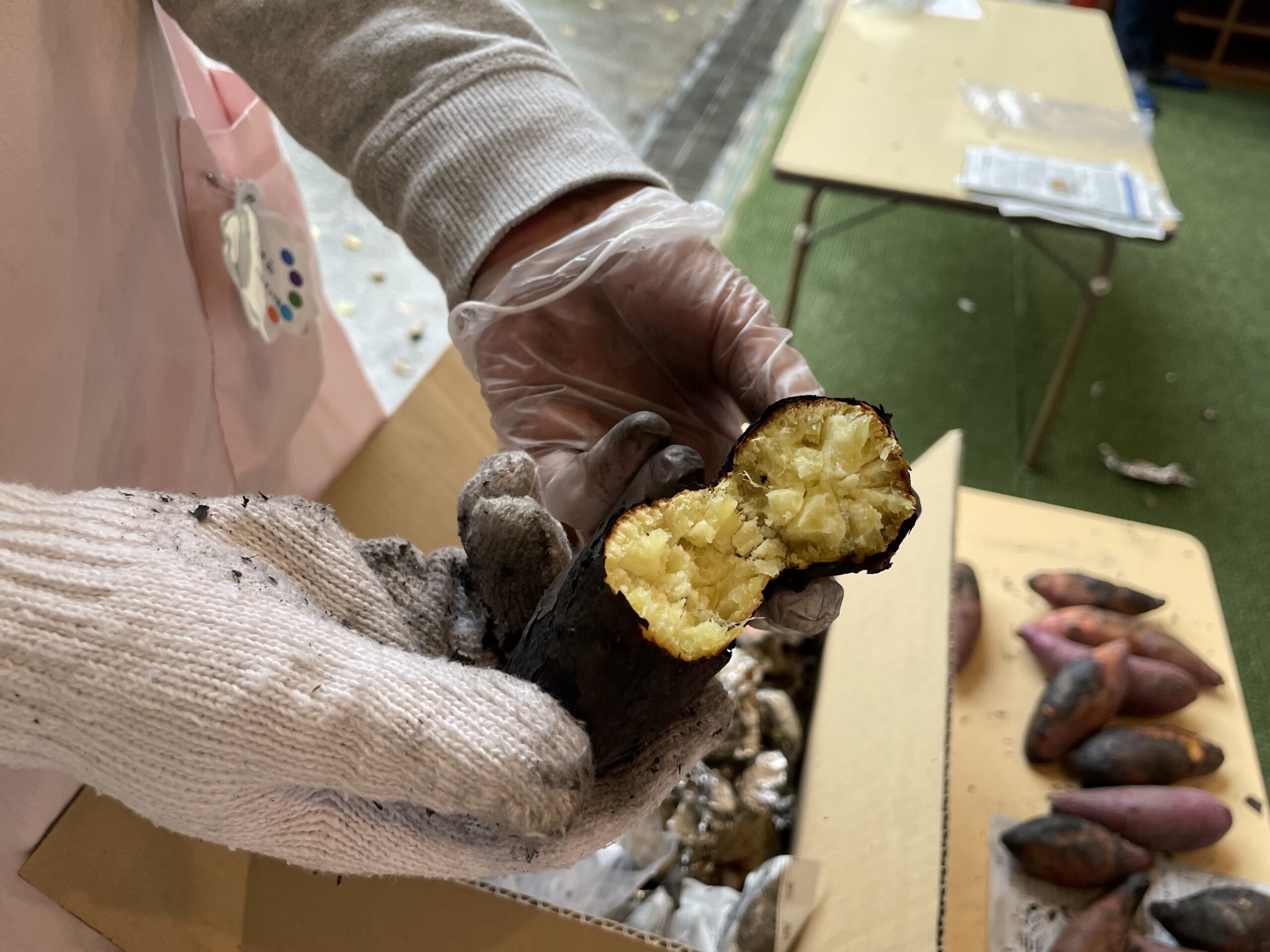 ですが途中で天気が悪くなってしまい、小雨が降る中やきいも会を開催しました🍠