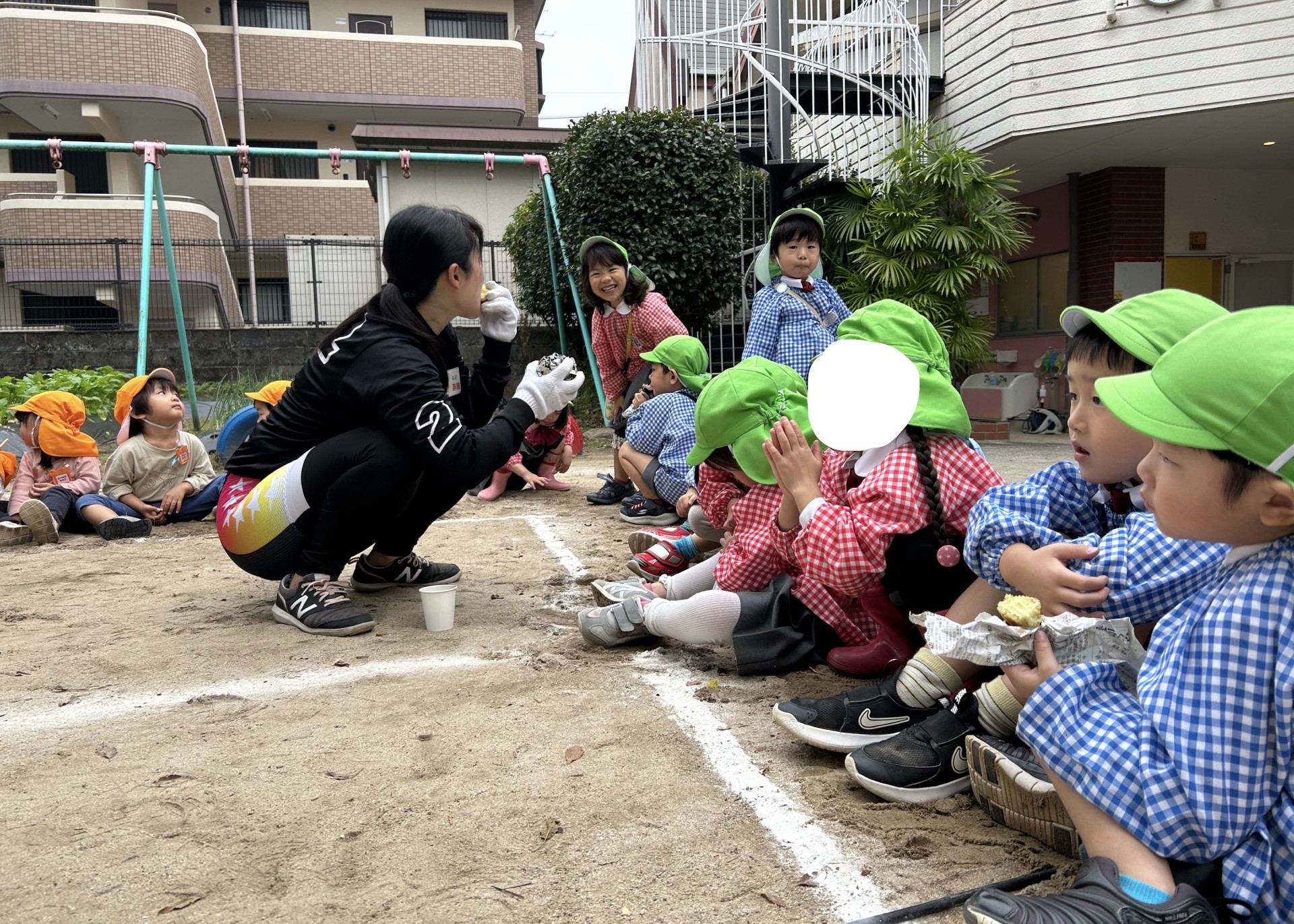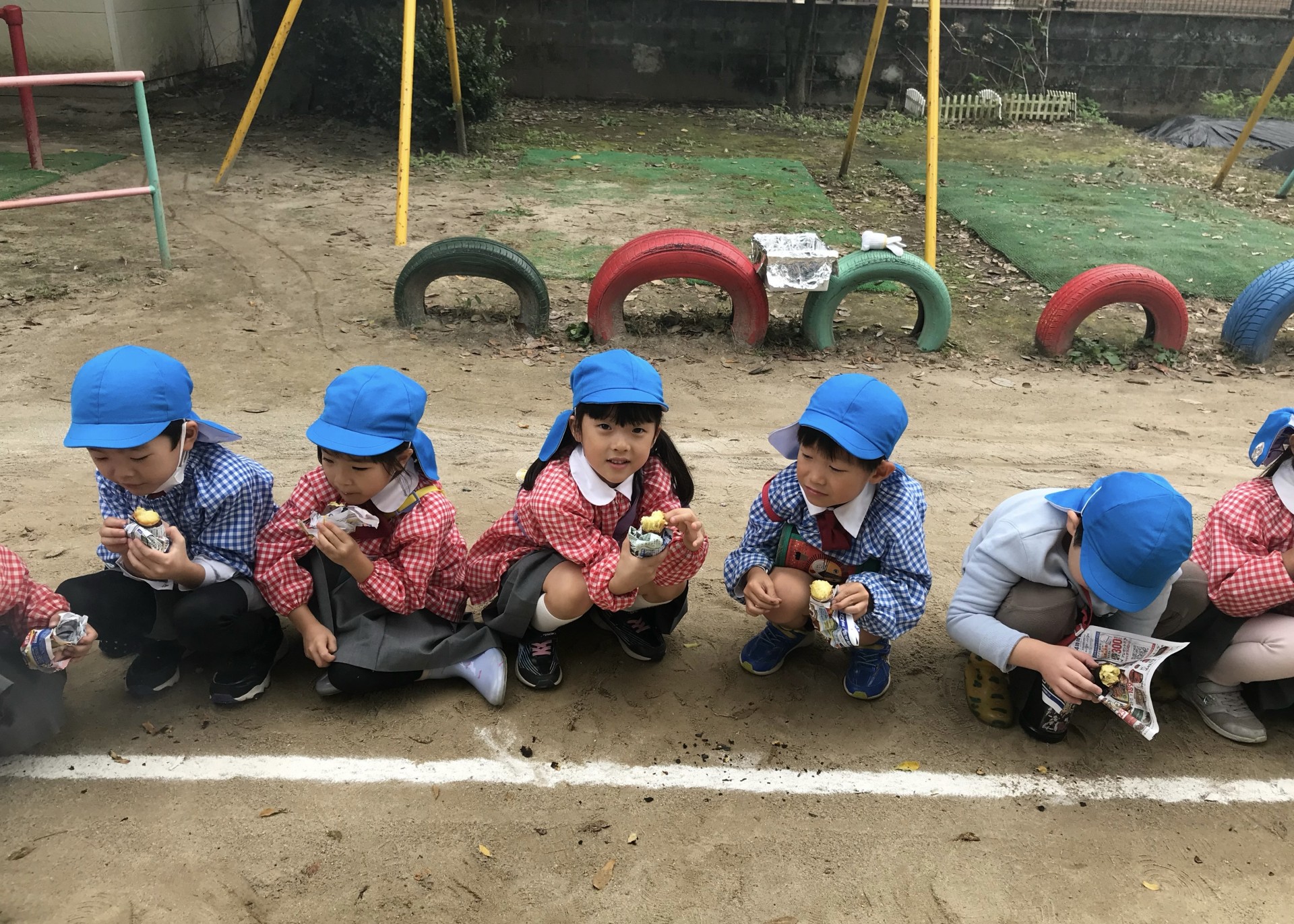 当日、朝から小雨だったのですが少しずつ晴れてきて外でやきいも会をすることが出来ました✨