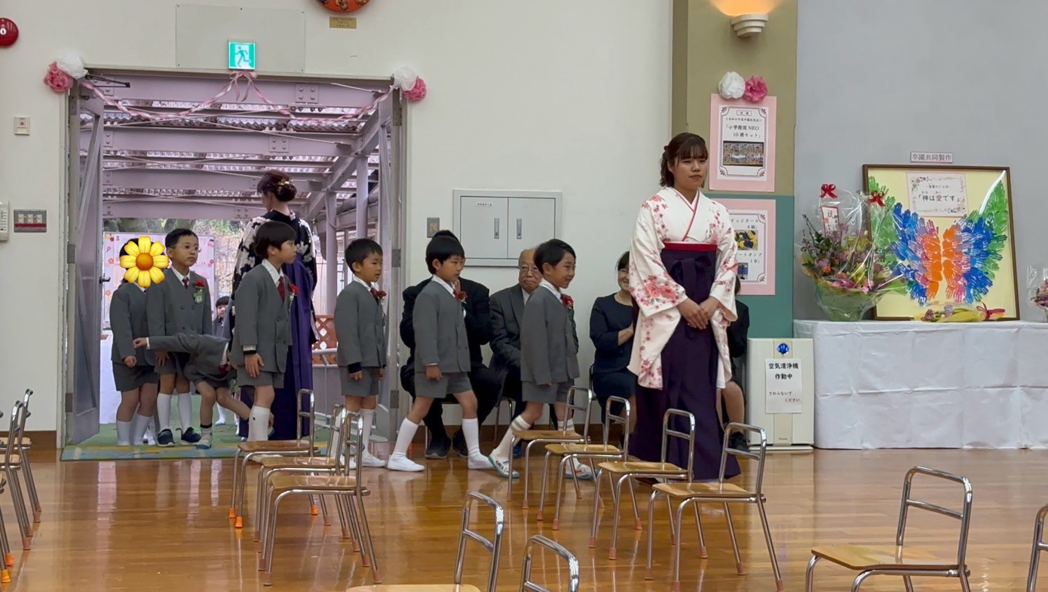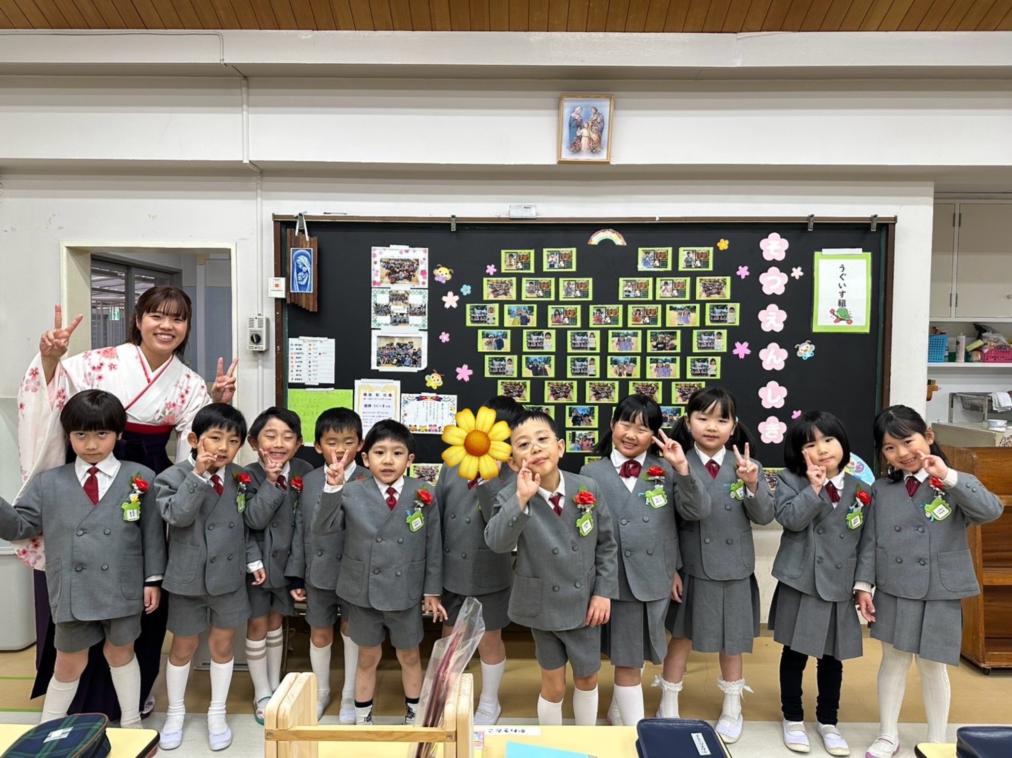 令和6年度卒園式 活動ブログ 2025年4月11日 3月18日(水) 卒園式を行いました。 21名の年長児がマリアこども園を卒園しました。 幼稚園で過ごす最後の一日です。 お友達と思い出の写真を見ています😊 みんなと幼稚園で一緒に過ごすことが出来てよかったです! 小学校へ行っても元気に頑張ってくださいね! マリアこども園の先生たち、みんなで応援しています♡