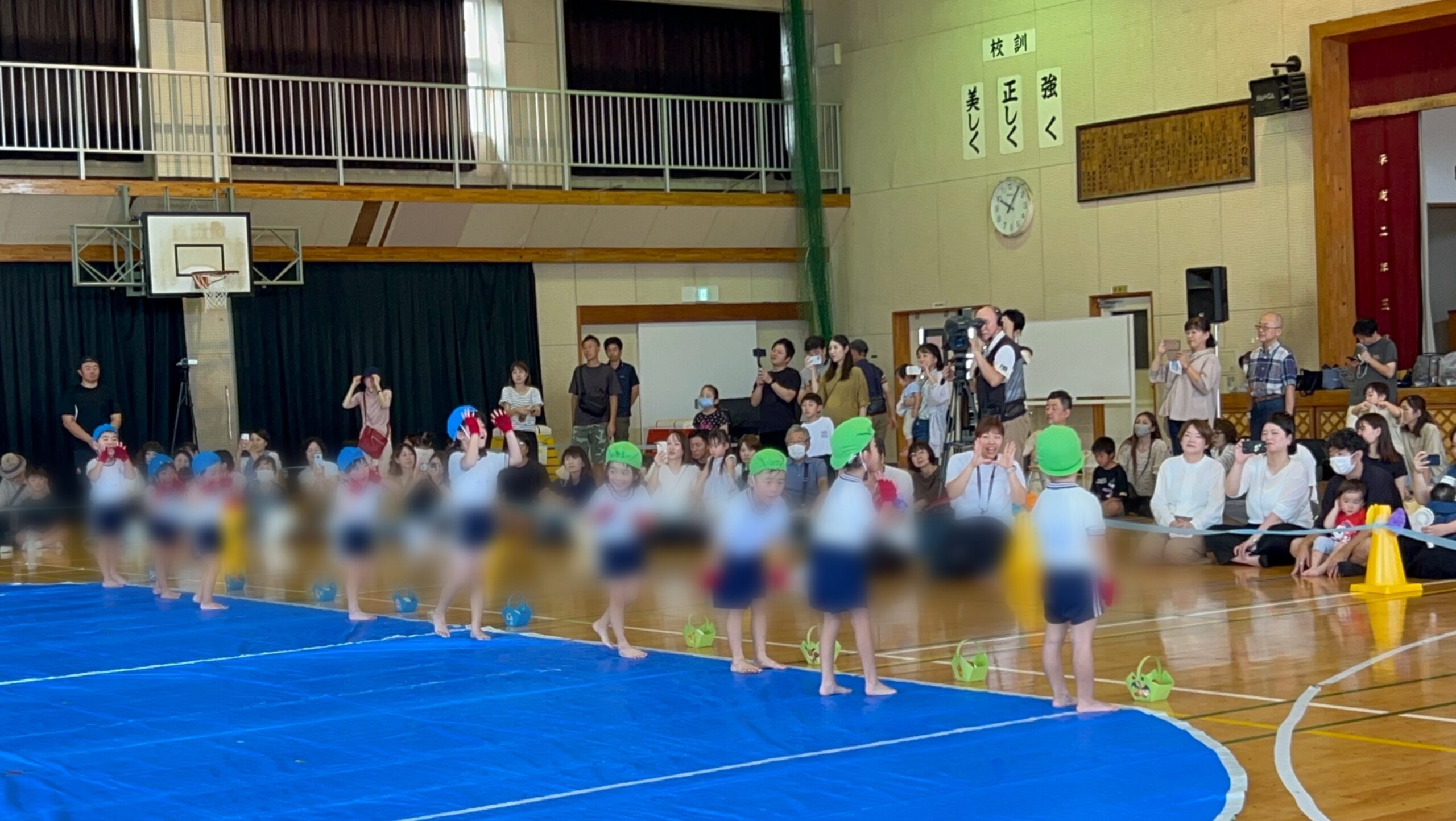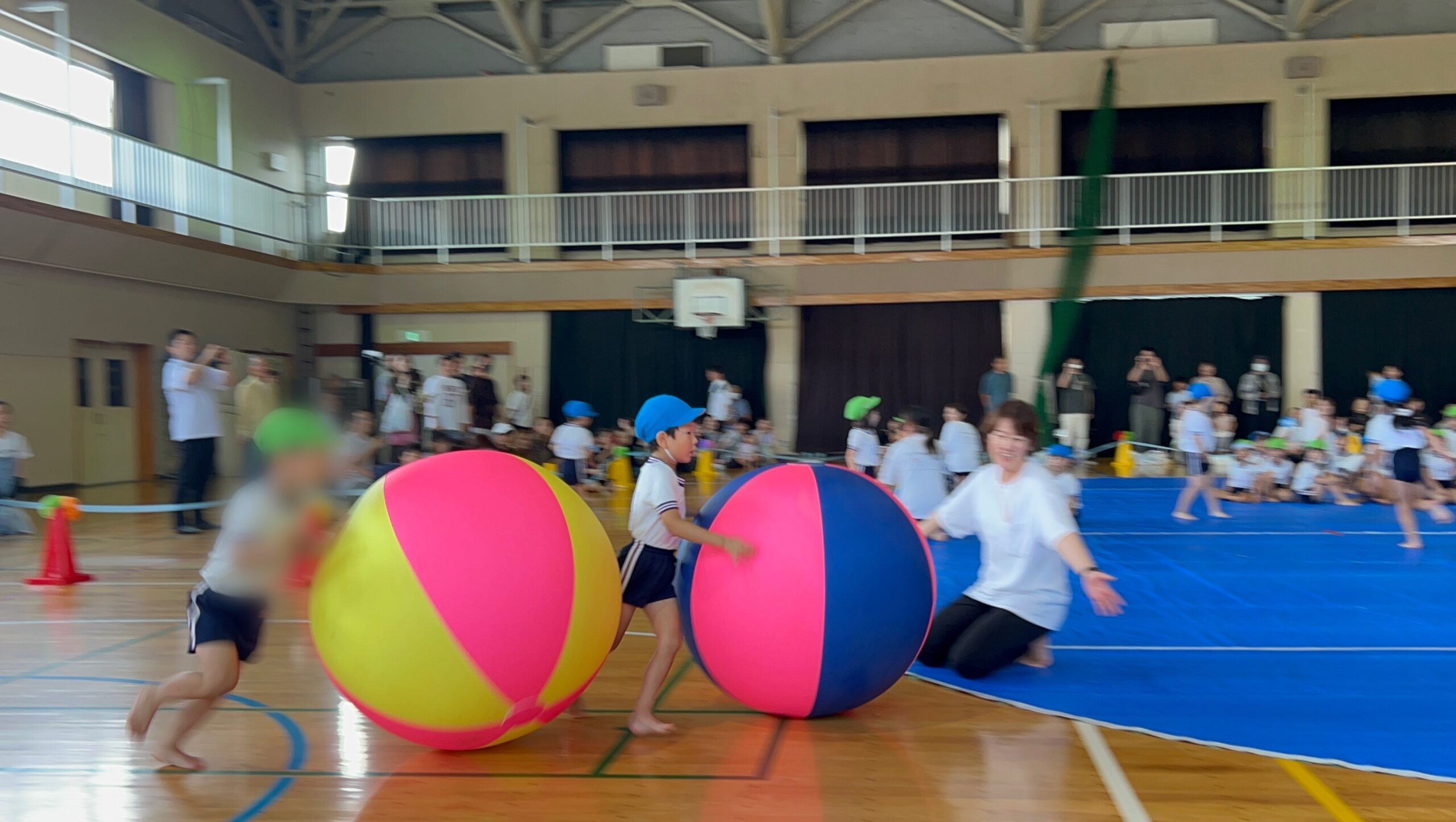 年中さんは玉入れ、年少さんは親子技巧走を親子で行いました👏